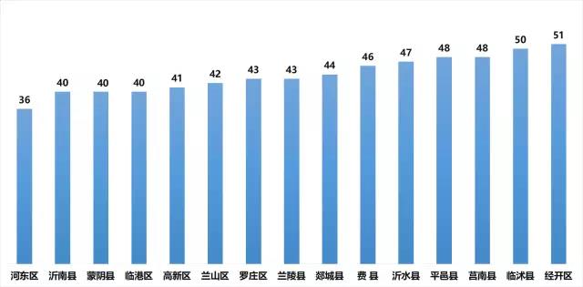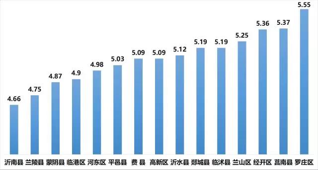 最好的是沂南县(4.66),最差的是罗庄区(5.55)。