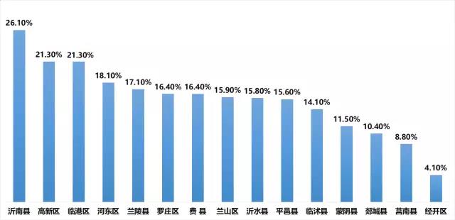 15个县区同比均改善,幅度最大的是沂南县(26.1%),改善幅度最小的是经开区(4.1%)。
