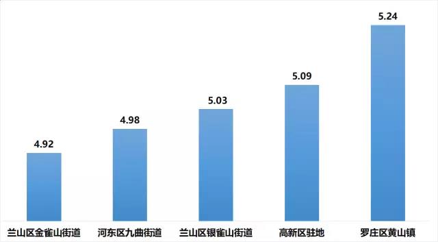 最好的是兰山区金雀山街道(4.92),最差的是兰山区义堂镇(6.25)。